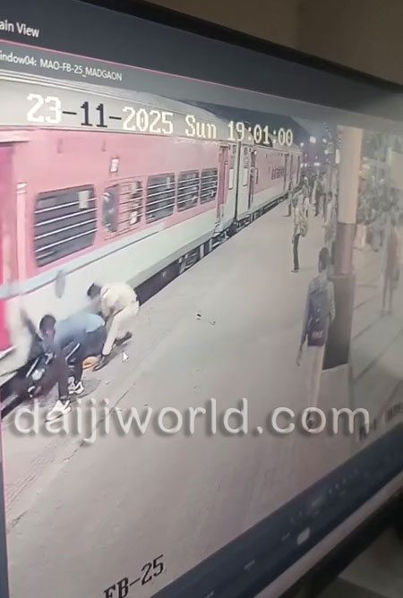 Daijiworld Media Network – Udupi (JD)Udupi, Nov 24: A potential tragedy was averted at Madgaon Railway Station on Sunday, November 23, when a passenger attempting to alight from a moving train slipped and fell into the gap between the train and the platform.<p style="text-align: j….