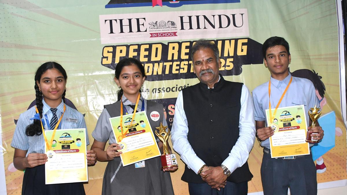 Anika C. Jayade wins The Hindu In School Speed Reading Contest 2025 in Hubballi, showcasing exceptional reading skills.