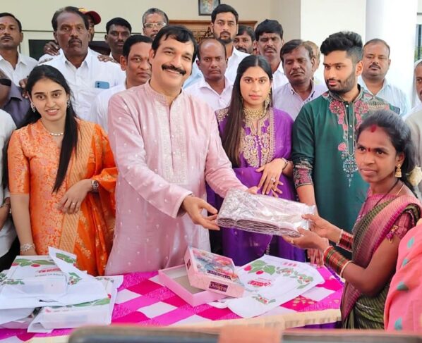 Siddipet: Man distributes silk sarees to 1300 women to mark daughter’s wedding