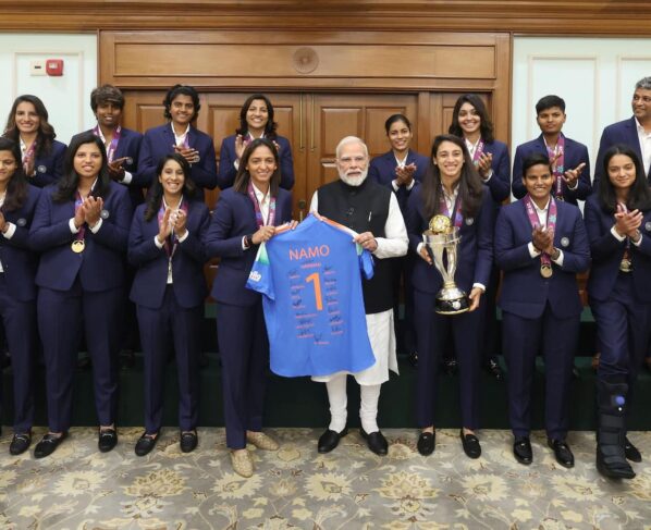 PM Modi Felicitates Women’s World Cup Champions, Team Gifts Him NAMO Jersey, In Pics