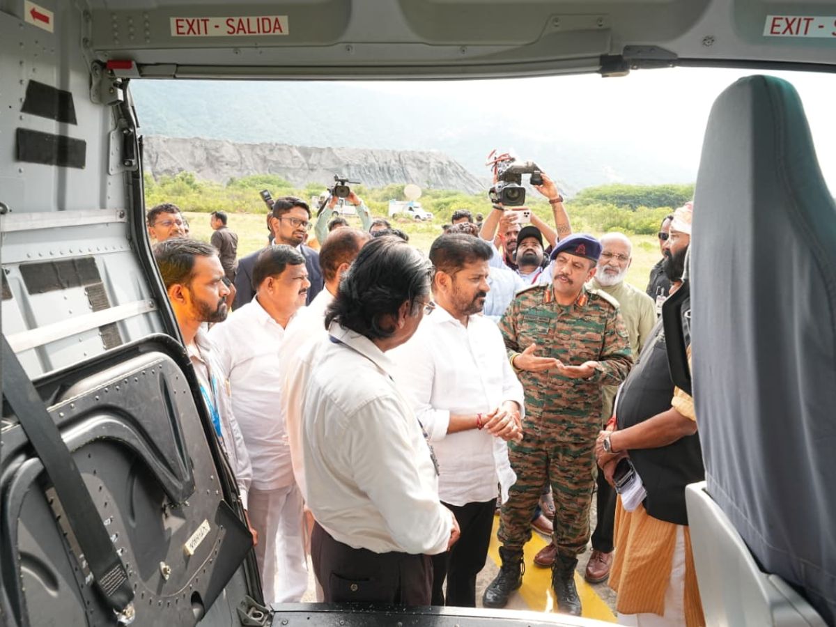 In a major stride towards accelerating the Srisailam Left Bank Canal (SLBC) tunnel works, Chief Minister A Revanth Reddy on Monday left for the project site by helicopter from Begumpet Airport to launch an Aerial Electromagnetic Survey, marking the first such initiative for a major irrigation project in Telangana.