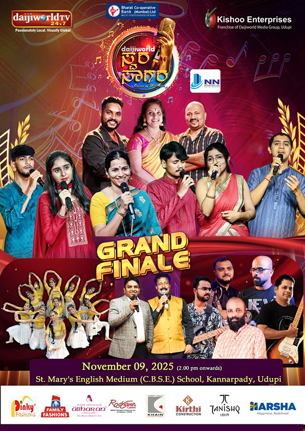 Daijiworld Media Network – Udupi (TP)Udupi, Nov 7: The stage is all set for the much-awaited grand finale of the popular singing reality show Daijiworld Swara Sagara, hosted by Daijiworld Udupi Studio under the banner of Kishoo Enterprises. The grand musical showdown will take pla….