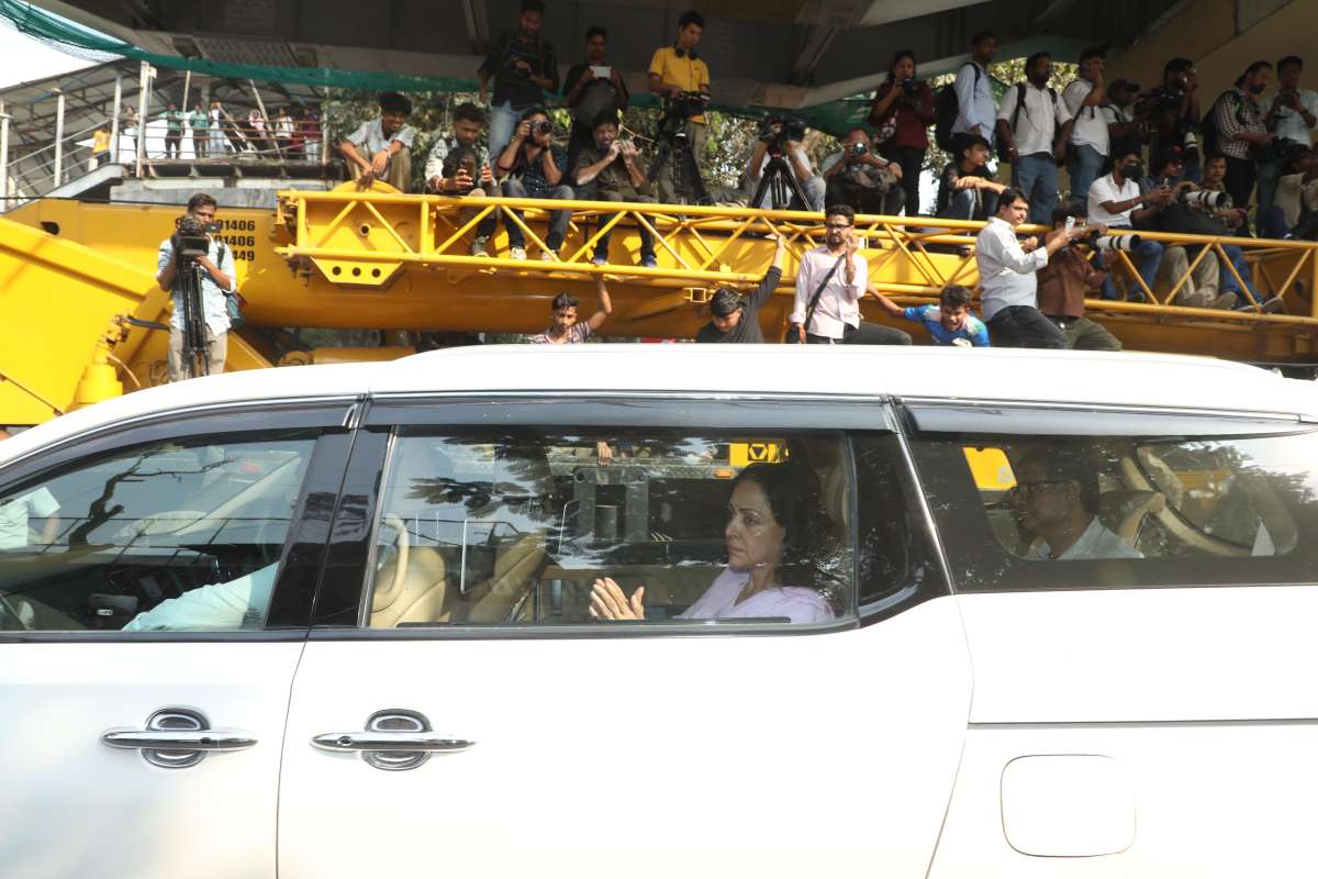 Dharmendra’s last rites: Wife Hema Malini appears with folded hands; Amitabh Bachchan, SRK join final farewell
