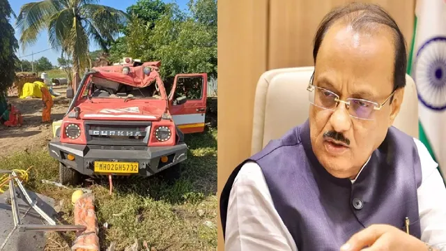 Ajit Pawar convoy accident,Beed district road accident,Maharashtra Deputy CM accident,Telgaon-Dharur Road accident,Family injured Ajit Pawar convoy crash,Fire brigade vehicle accident Beed,Dharur tehsil road incident,Pawar convoy fire truck crash victims