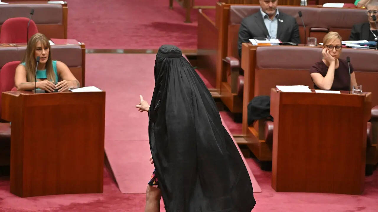 Pauline Hanson, leader of the One Nation party, was suspended from the Australian Parliament for wearing a burqa in the Senate, protesting against opposition to her bill banning full face coverings in public.