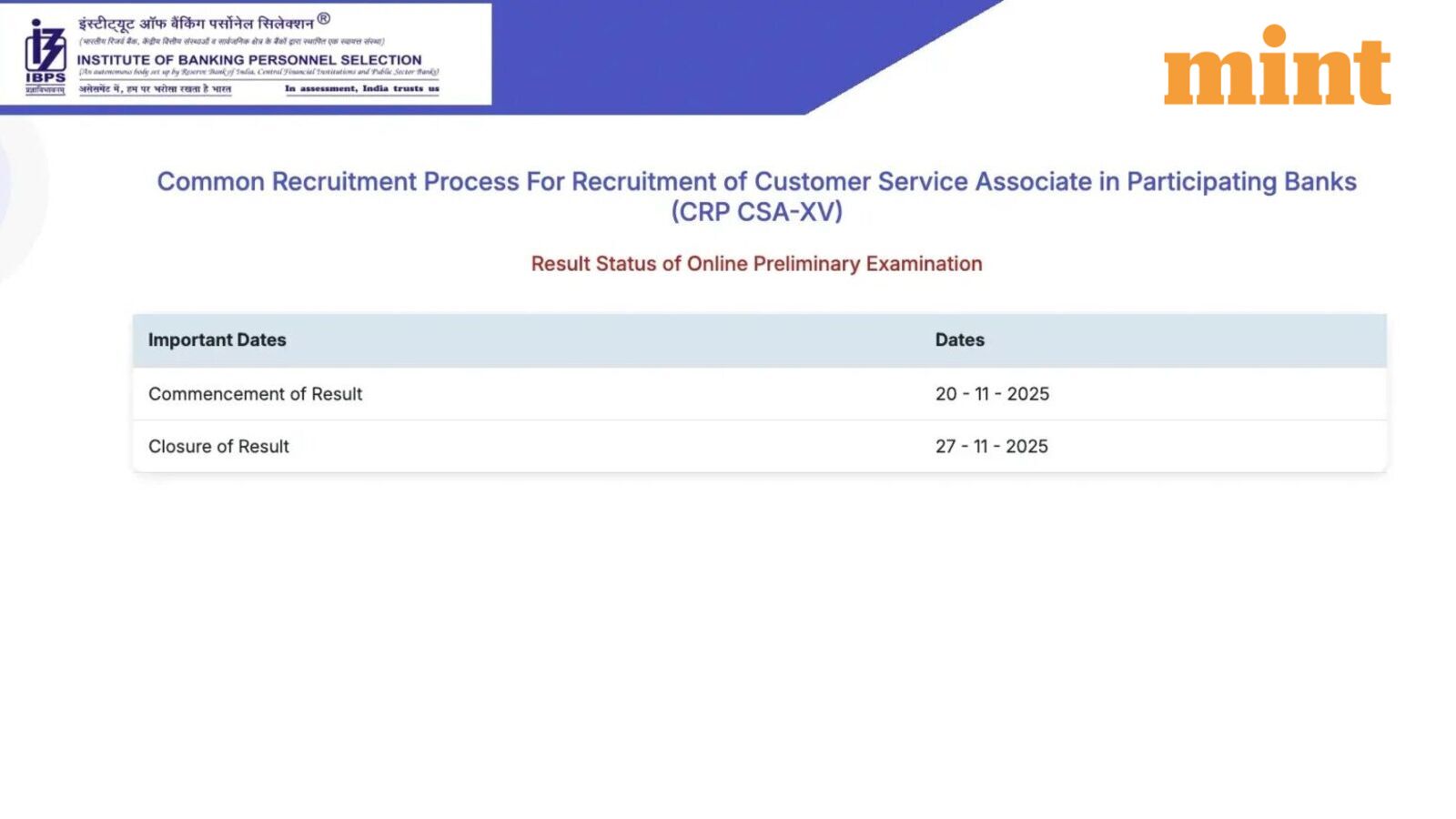 The result link has been activated at the official website of IBPS at www.ibps.in. Candidates can visit the link to check the results and follow the steps written in this article.