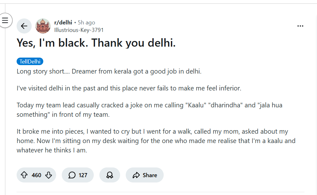 A Kerala man’s emotional Reddit post describing the racist slurs he faced at his Delhi workplace has gone viral, sparking widespread outrage.