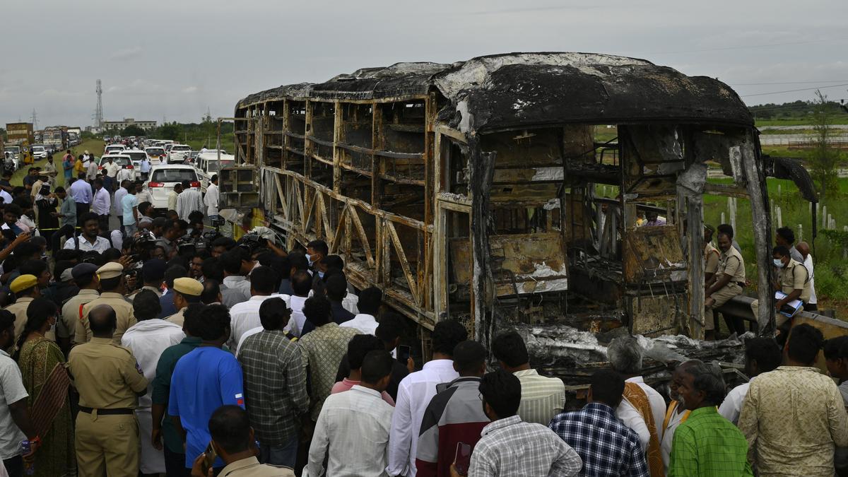 The private travel bus went up in flames after colliding with a bike on NH-44 at Chinnatekur of Kallur mandal, claiming 19 lives last month