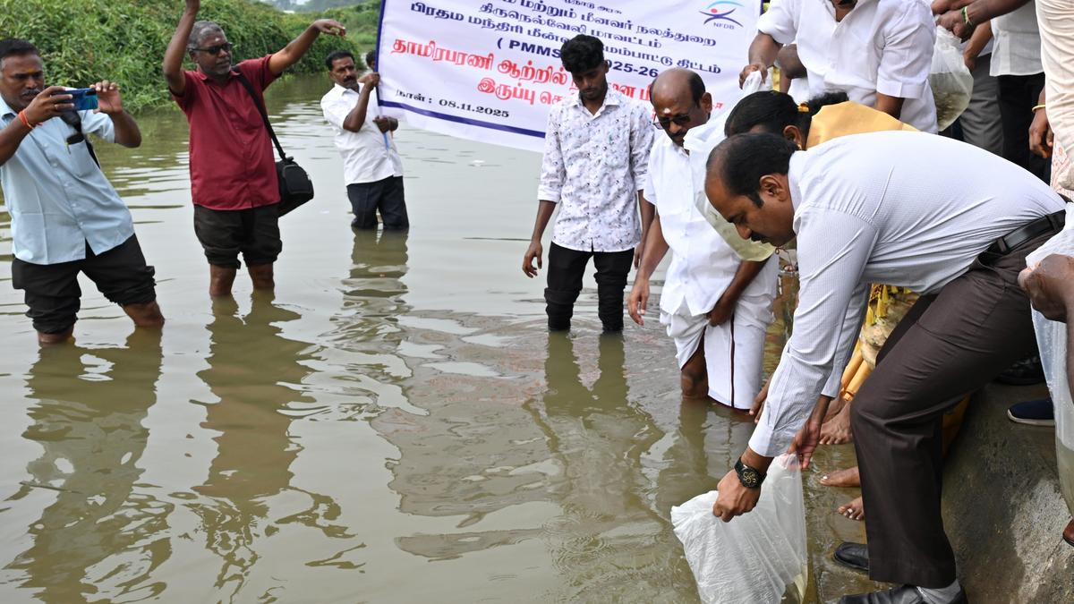 Over a lakh native breed fingerlings released in Thamirabarani River to support local fishermen and enhance the ecosystem.