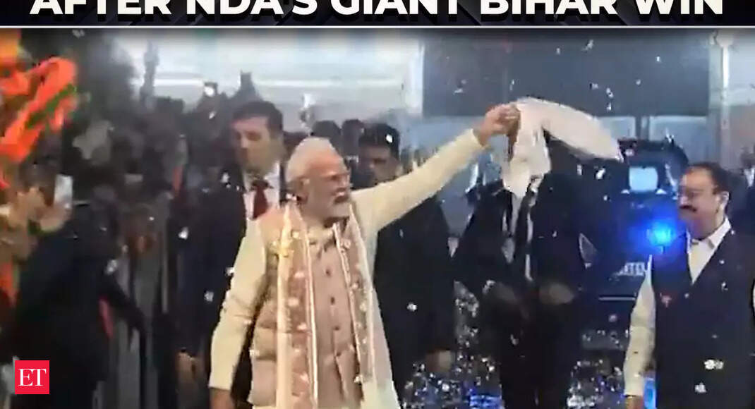 PM Modi’s gamcha greeting as BJP celebrates NDA’s giant Bihar win | Bihar Election Results