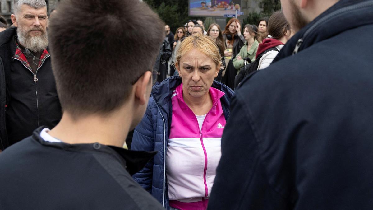 Police intervened and separated the crowds after flares were thrown both ways, a Reuters video showed