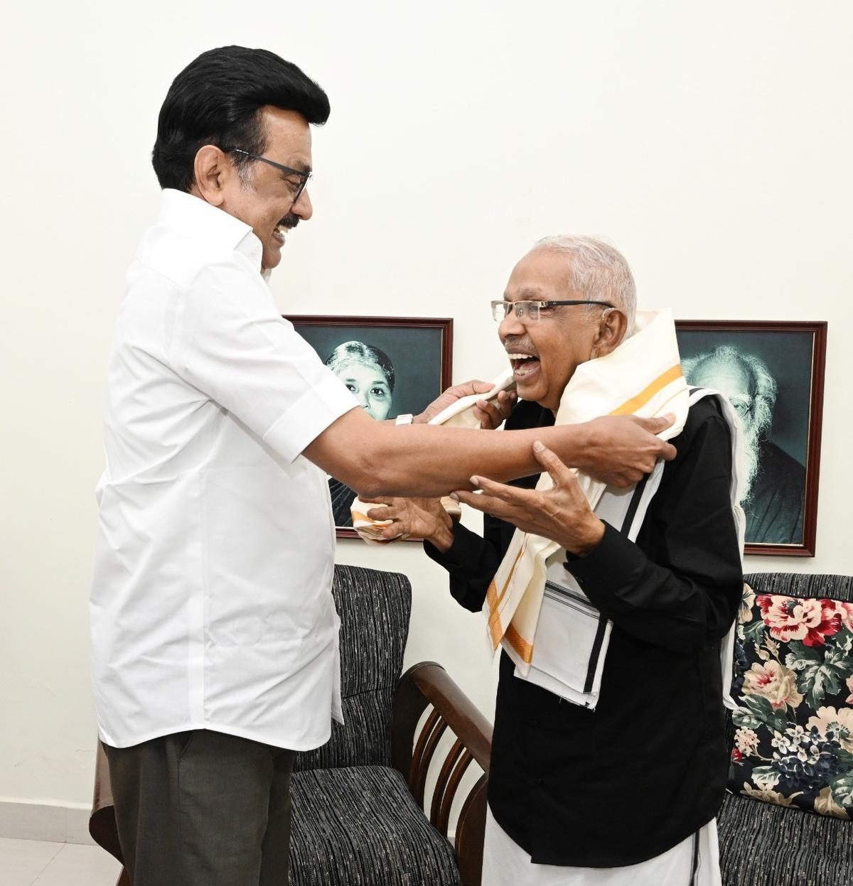 M.K. Stalin wishes K. Veeramani a happy birthday, praising his commitment to Tamil welfare and social justice.