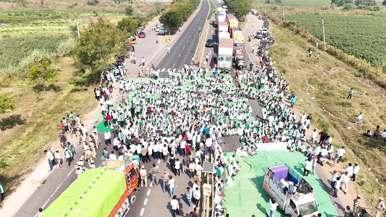 Farmers and Rythu Sangham leaders blocked the highway near the Bhoraj checkpost