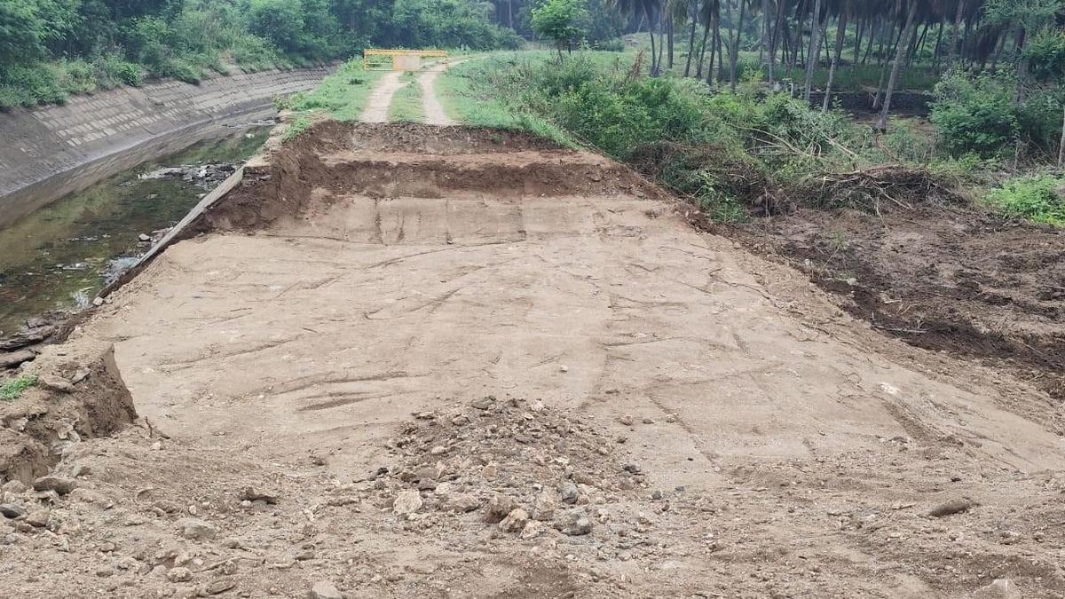 Water Resources Department is repairing the breach at Vavipalayam along PAP Main Canal to prevent further flooding.